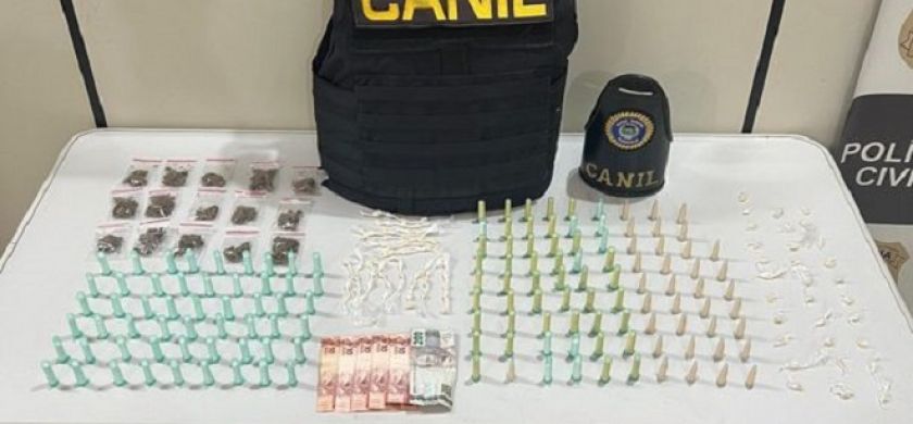 Com ele foi preso um maior de idade com uma sacola recheada de drogas